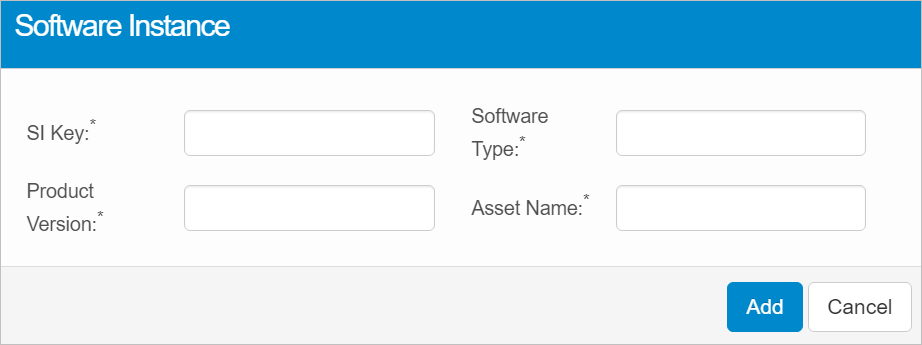| 1. | To add a new instance, click Add. The Software Instances dialog box displays. |