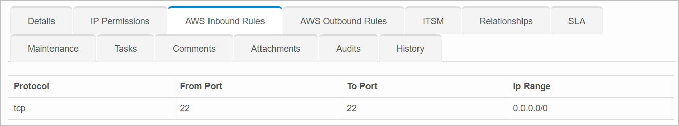 | 3. | Click AWS InboundRules or AWS Outbound Rules. |