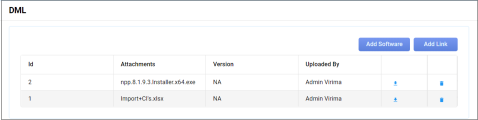 Click Upload. If the upload is successful, the software is shown on the DML tab. By default, an ID is assigned. |