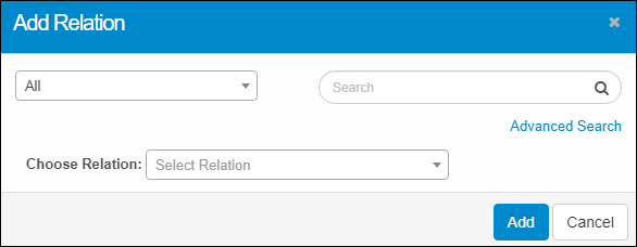 1. Click the Add Source or Add Target button. The Add Relation dialog box displays.