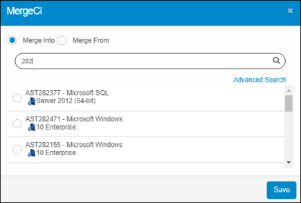 From the Select Actions drop-down list, select Merge CI. The Merge CI dialog box displays. |