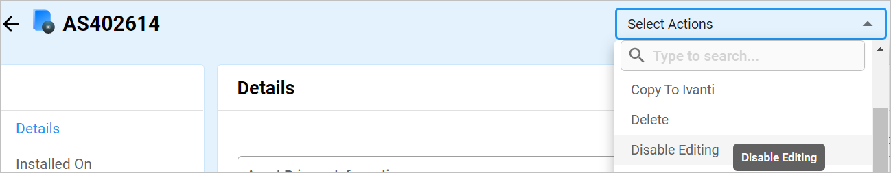 In the resulting window, from the Select Actions drop-down list, do one of the following: |