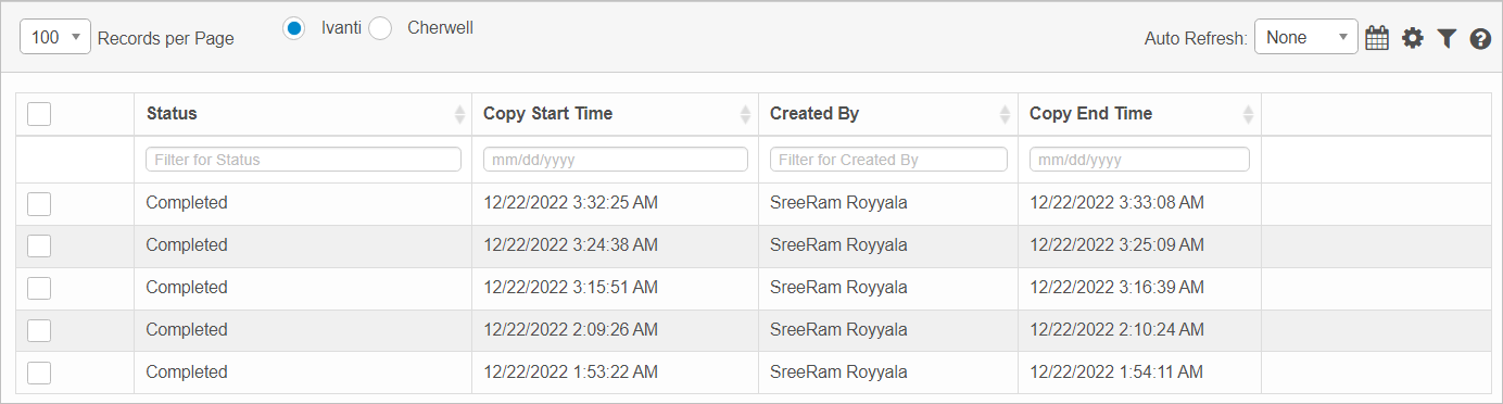 1. In the main window, select ITSM > Configuration Management > Sync Logs. The Sync Logs window displays and shows the details for all moves.