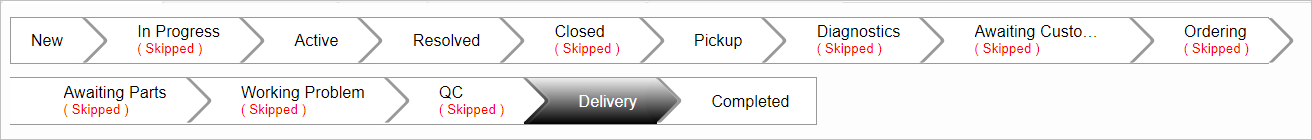 Click OK. The appropriate next step is taken. For example, when the "Active" status is changed, the "In Progress" status changes to "Skipped."