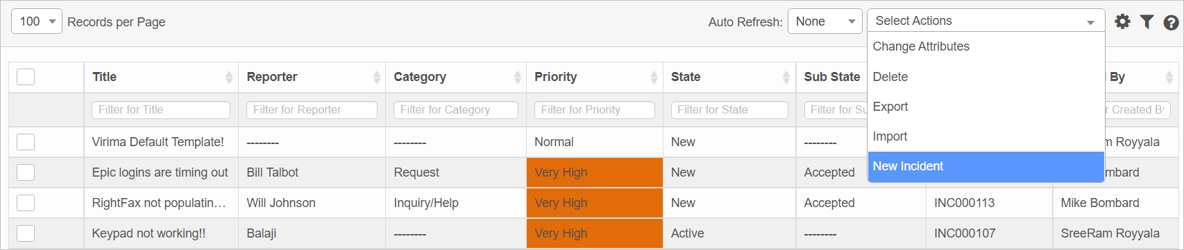 | 1. | From the Select Actions drop-down list, choose New Incident. |