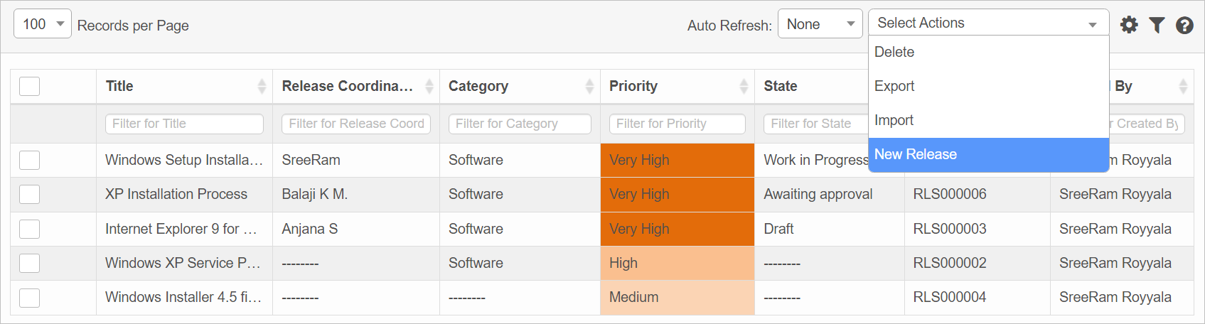 | 1. | From the Select Actions drop-down list, choose New Release. |