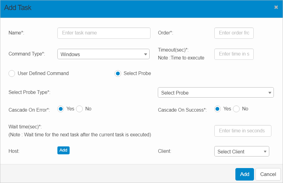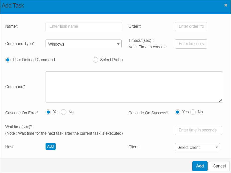 | Command Type | Click the drop-down list and select the applicable command (such as Windows or Unix) to be executed. |
