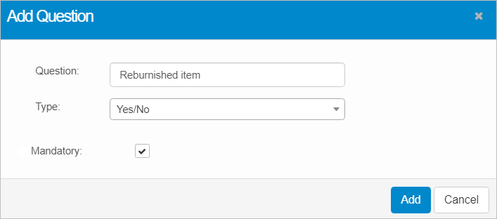 | 1. | Under Custom User Inputs, click Add Existing Question. The Add Question dialog box displays. |