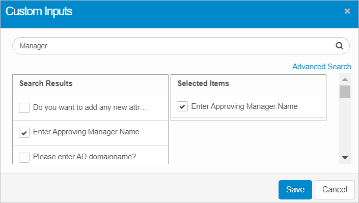 | 1. | Under Custom User Inputs, click Add Question. The Add Question dialog box displays. |