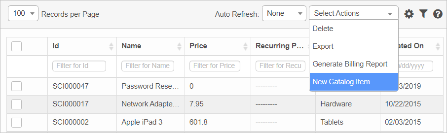 | 1. | From the Select Actions drop-down list, choose New Catalog Items. The New Catalog Item window displays. |