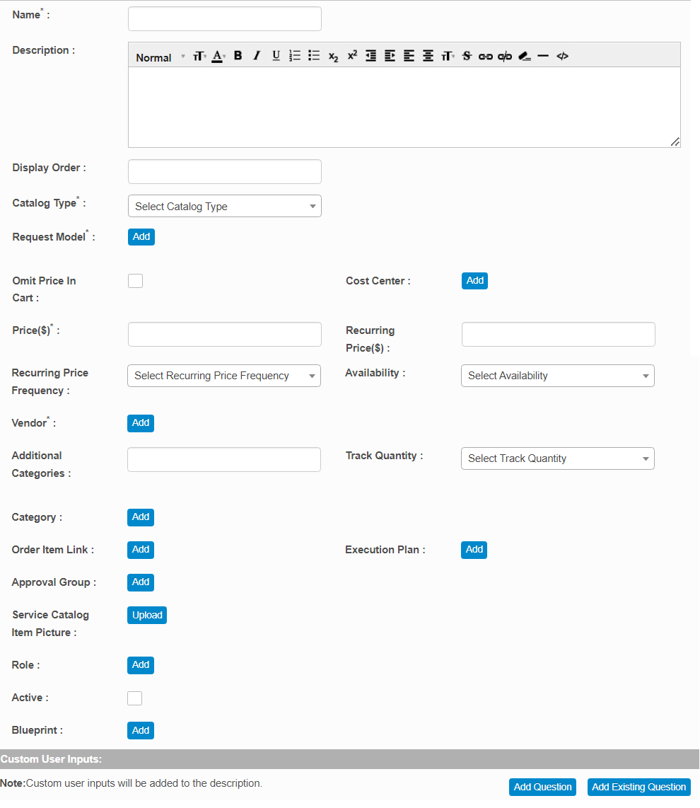 | Description | Enter details about this catalog item. | ||