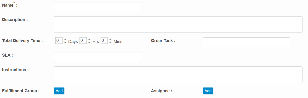 Enter the time interval for completion of this task in hours/days/minutes. In the list of plans, the Total Delivery Time is shown in minutes. |