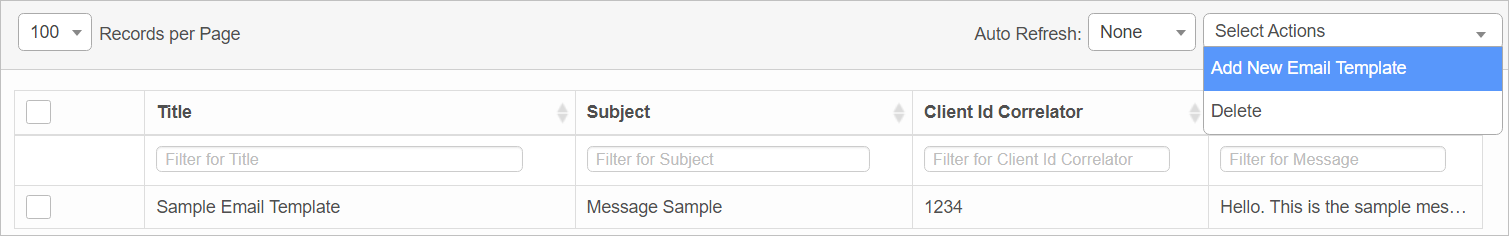 | 1. | From the Select Actions drop-down list, choose Add Email Template |