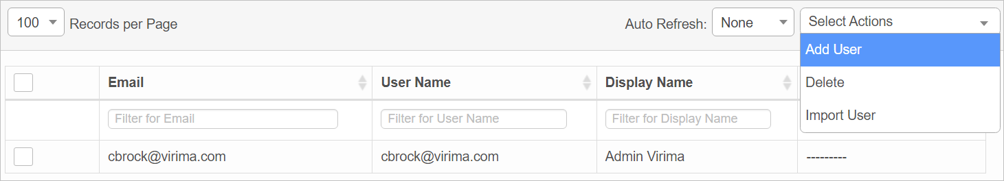 | 1. | From the Select Actions drop-down list, choose Add User. |