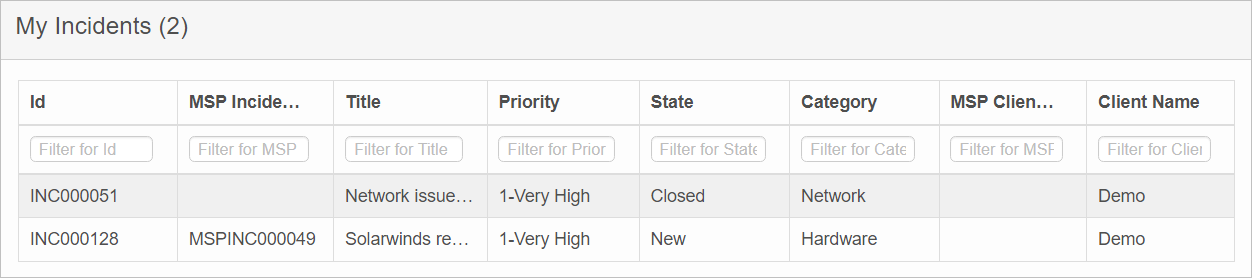 | 2. | Click My Incidents. A list of all incidents is displayed. |