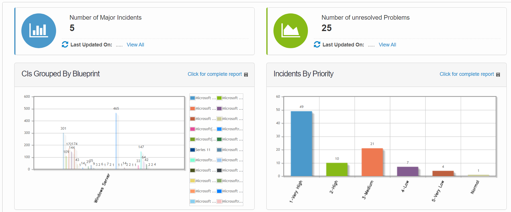 Click View All to see a list of all of the applicable items (e.g., Major Incidents and Unresolved Problems).