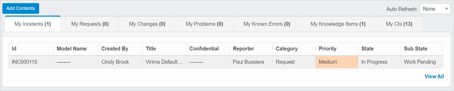 In the navigation pane, select My Dashboard. The My Dashboard window displays.