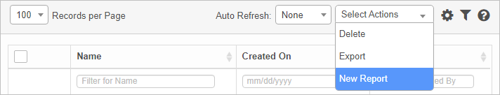 From the Select Actions drop-down list, choose New Report.