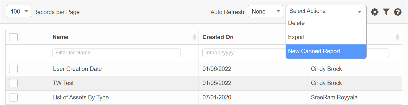 In the navigation pane, select Reports > Canned Reports. The Reports window displays.