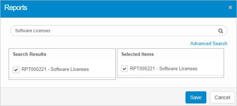 In the results list, select the applicable report(s). As you select each report, it is moved to the Selected list. |