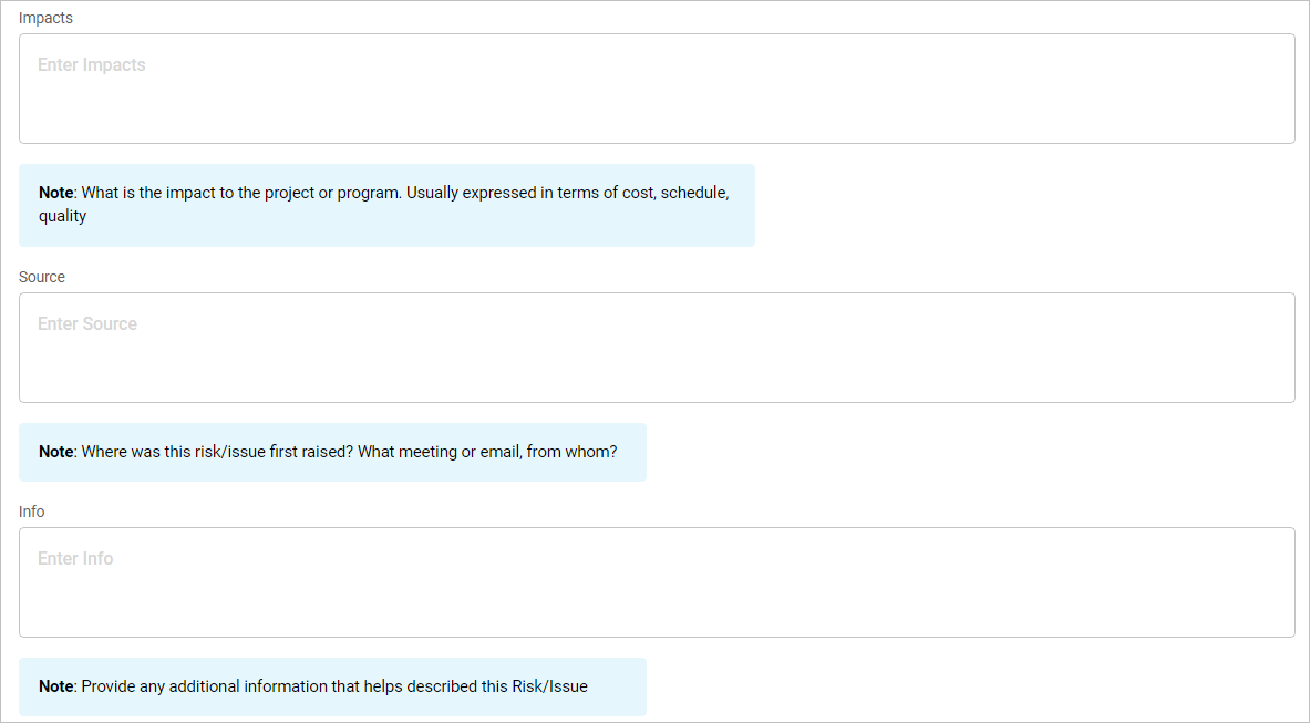 Indicates the impact to the project or program. Usually expressed in terms of cost, schedule and quality. |