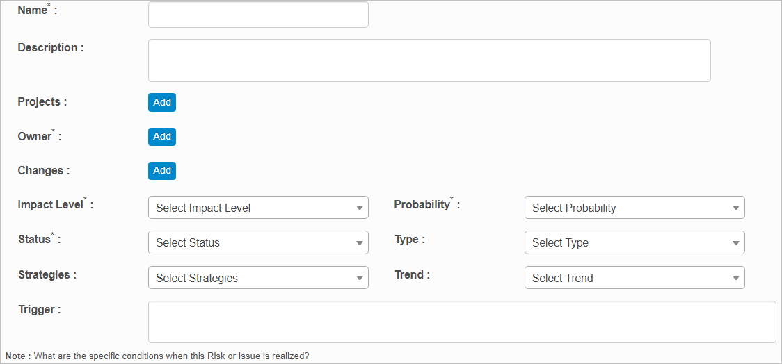 Indicates the specific conditions when this Risk or Issue is realized. |