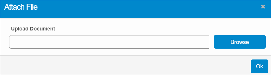 In the Request Details dialog box, click Upload. The Attach File dialog box displays. |