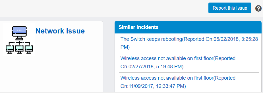 From the list of items, click the item related to the issue. The issue window shows a list of Similar Incidents. This is the avoid the possible duplication of an issue. |